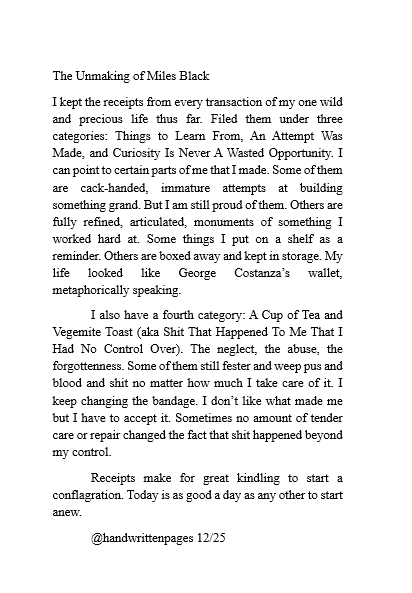 I kept the receipts from every transaction of my one wild and precious life thus far. Filed them under three categories: Things to Learn From, An Attempt Was Made, and Curiosity Is Never A Wasted Opportunity. I can point to certain parts of me that I made. Some of them are cack-handed, immature attempts at building something grand. But I am still proud of them. Others are fully refined, articulated, monuments of something I worked hard at. Some things I put on a shelf as a reminder. Others are boxed away and kept in storage. My life looked like George Costanza’s wallet, metaphorically speaking.