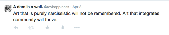 The arts are not a respite for those with mental or physical disabilities. Nor are the arts the domain of the ‘tortured artist.’ The arts are the domain of all; we should all be creating, all contributing, while allowing for those who want to pursue it as a career to make that choice freely and boldly.