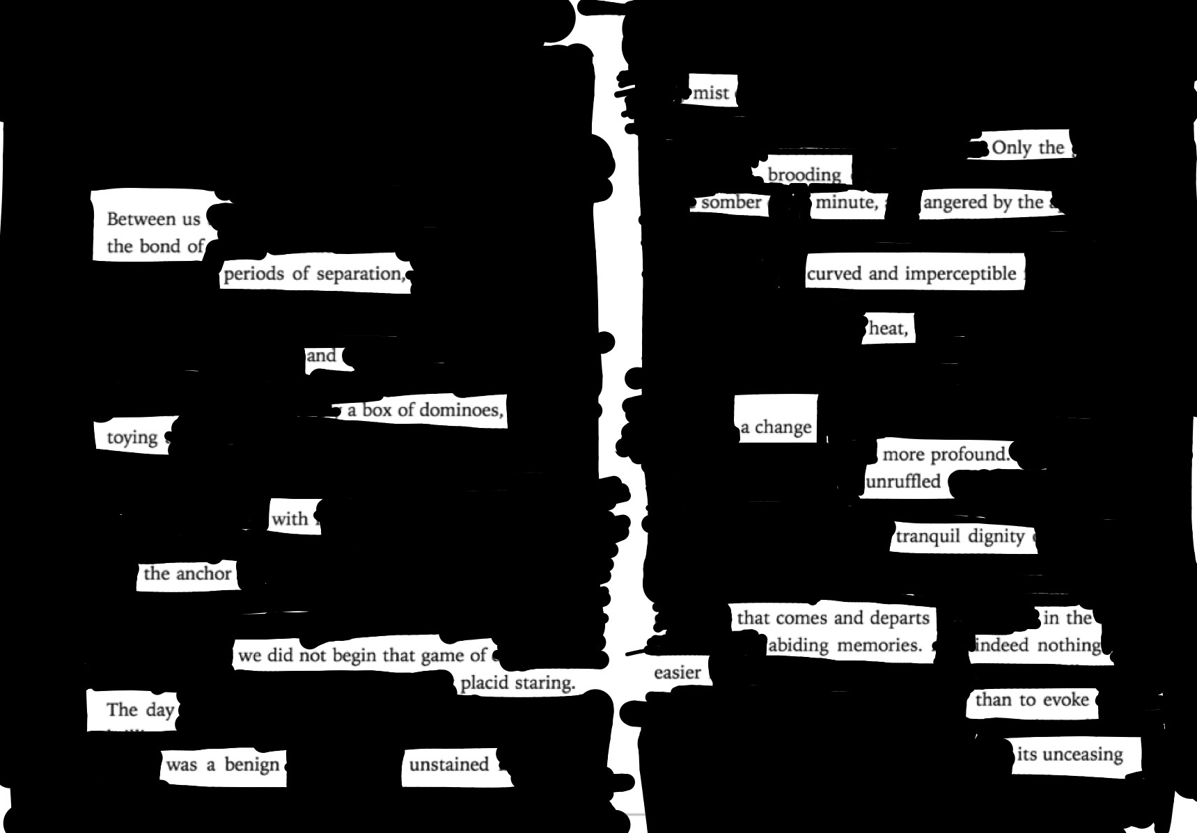 After yesterday’s modicum of success with blackout poetry, I tried my hand at another (need to do something creative at the moment while I get my head back into shape to tackle some significant writing projects in January).