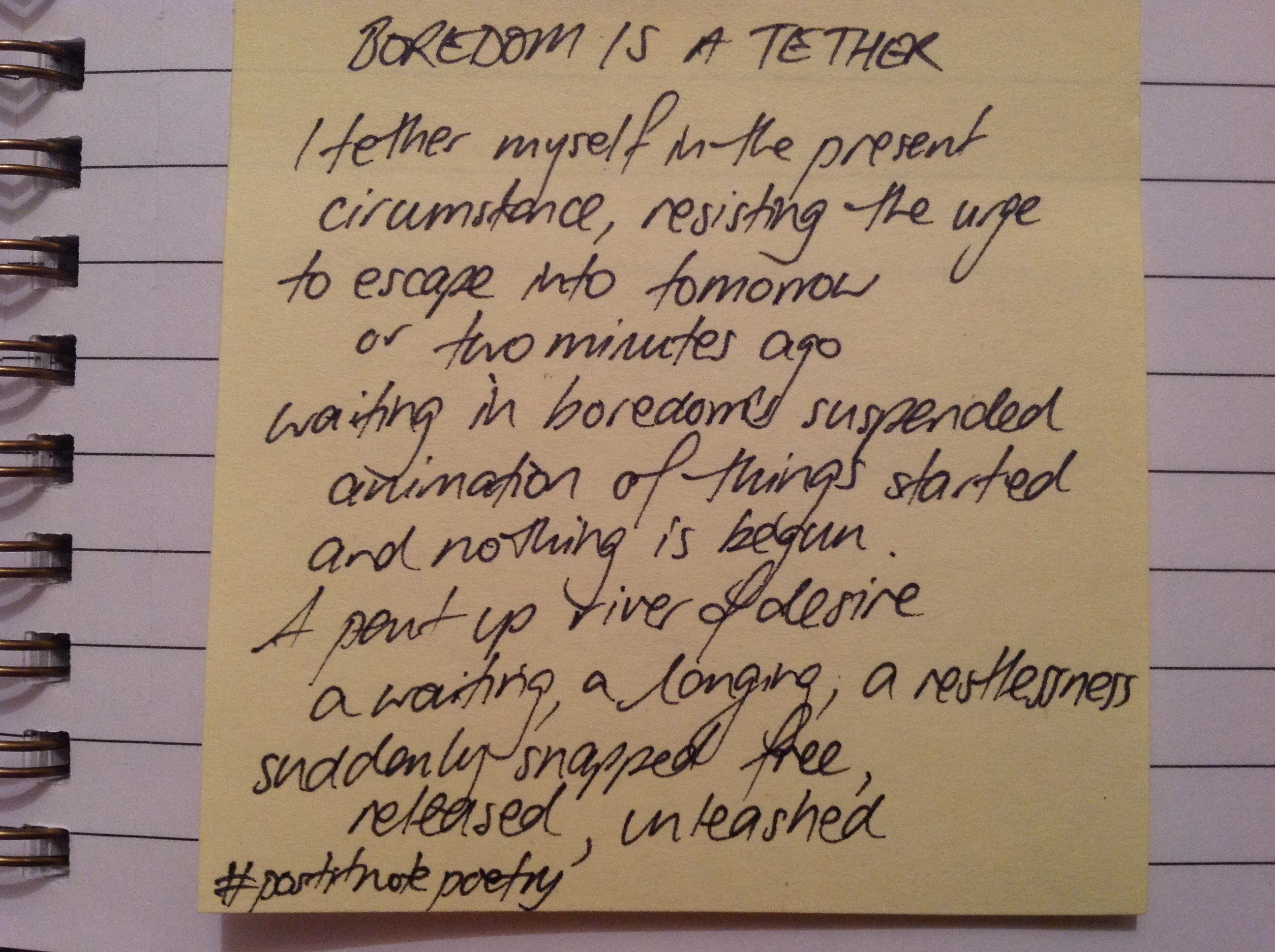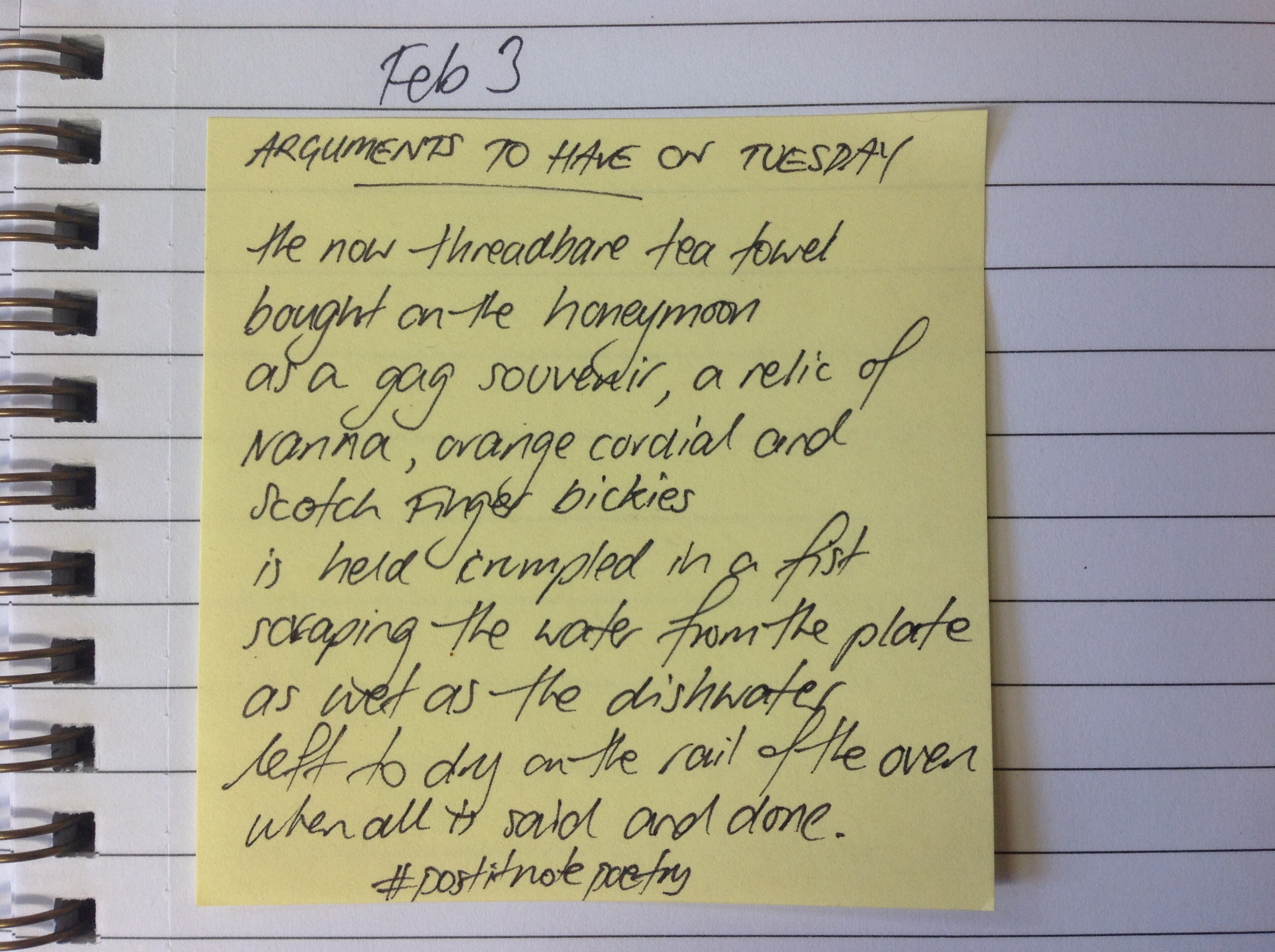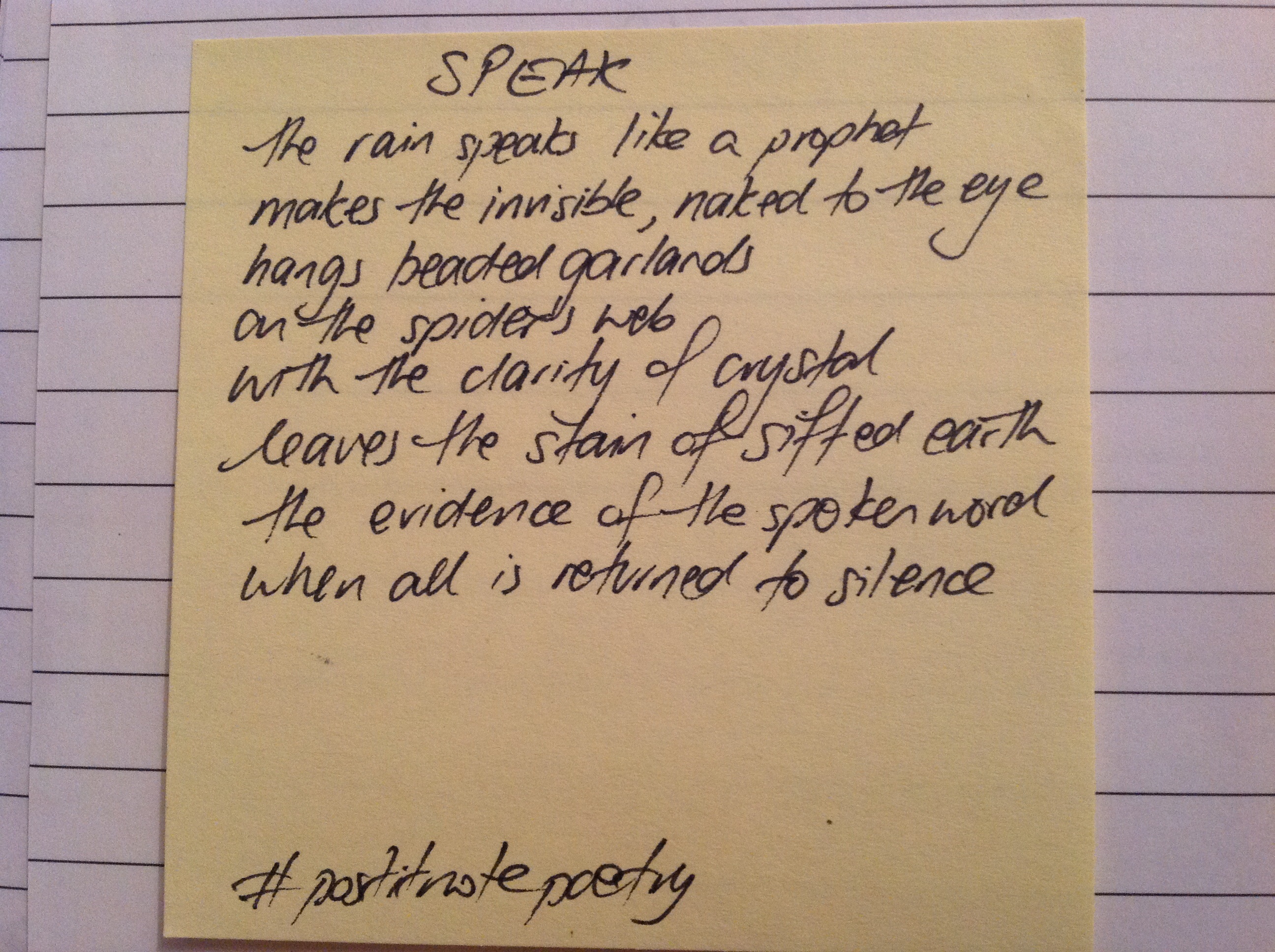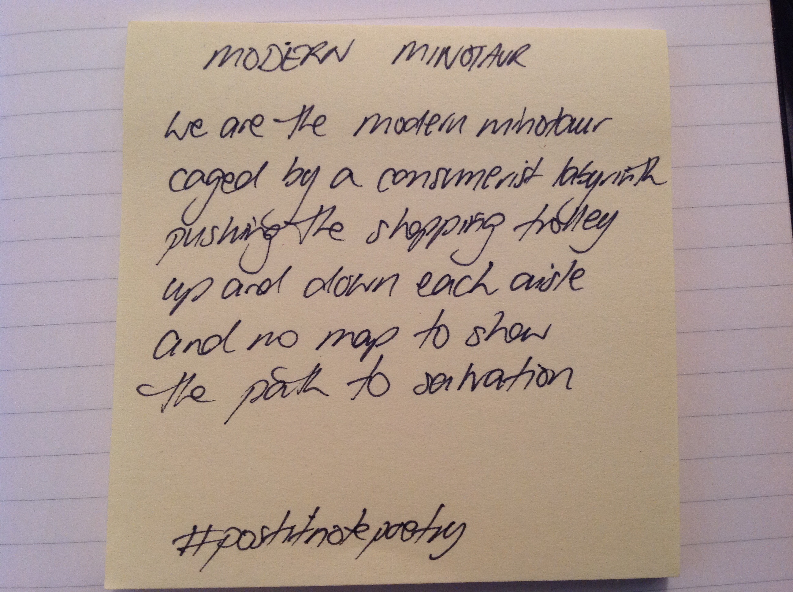 If you want to join in the fun of #postitnotepoetry, grab a pen, a wad of Post It Notes and write. Take a photo it and upload it to twitter with the hashtag #postitnotepoetry