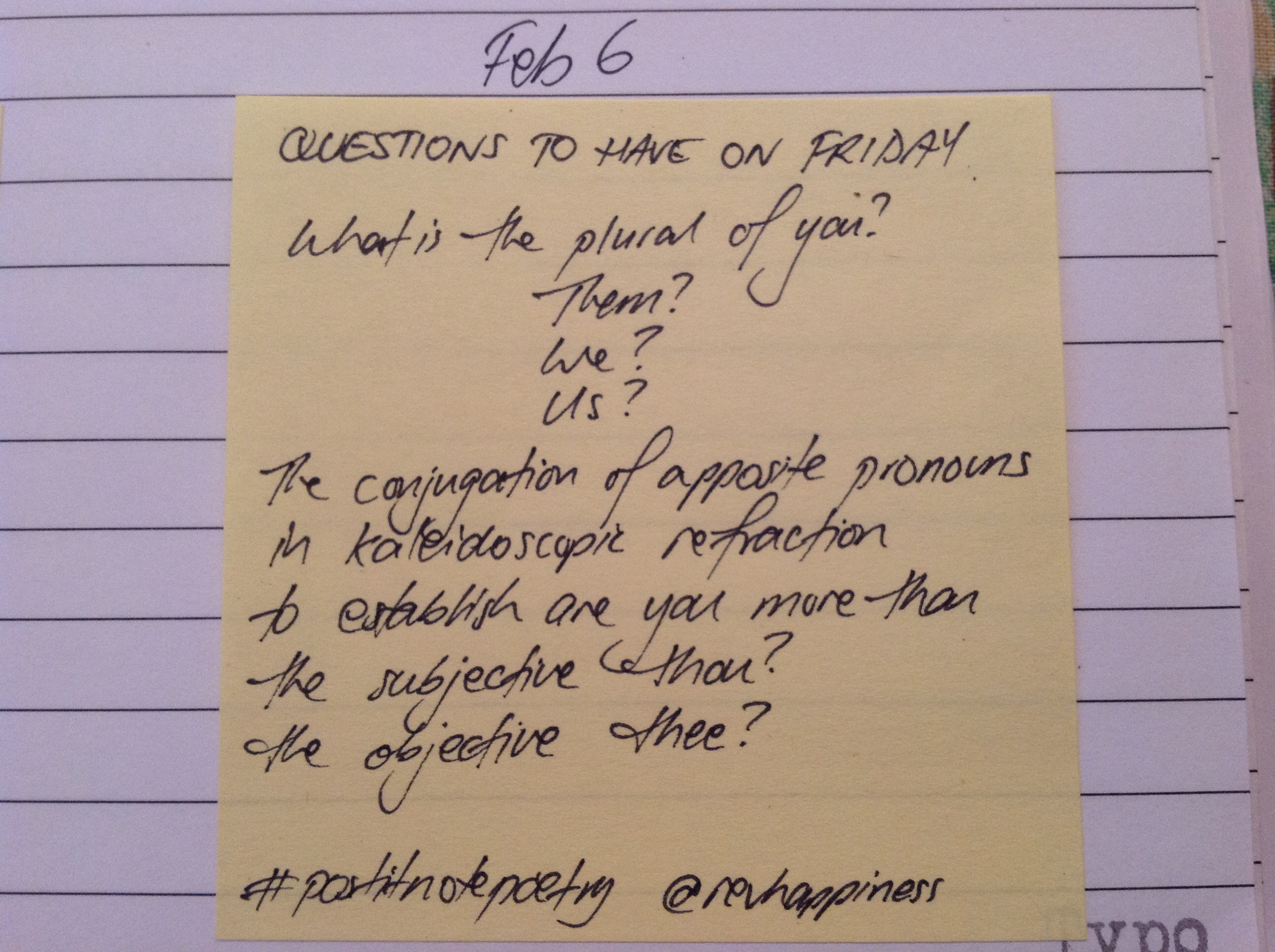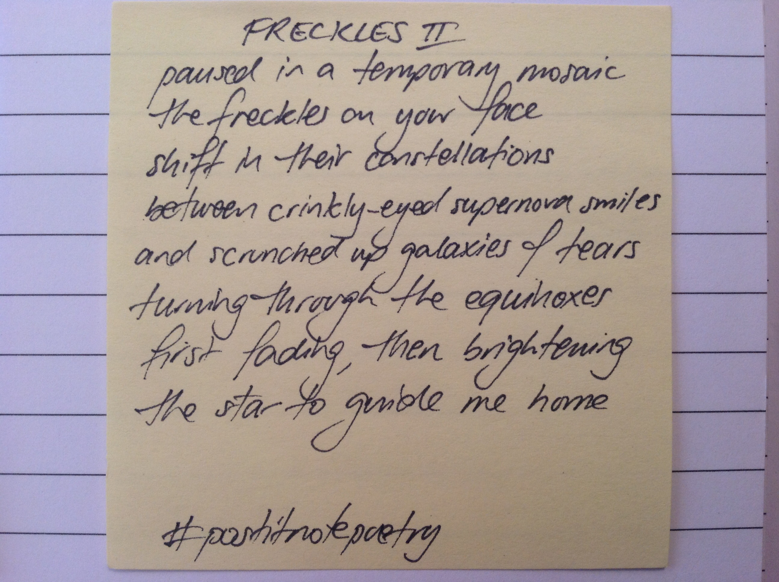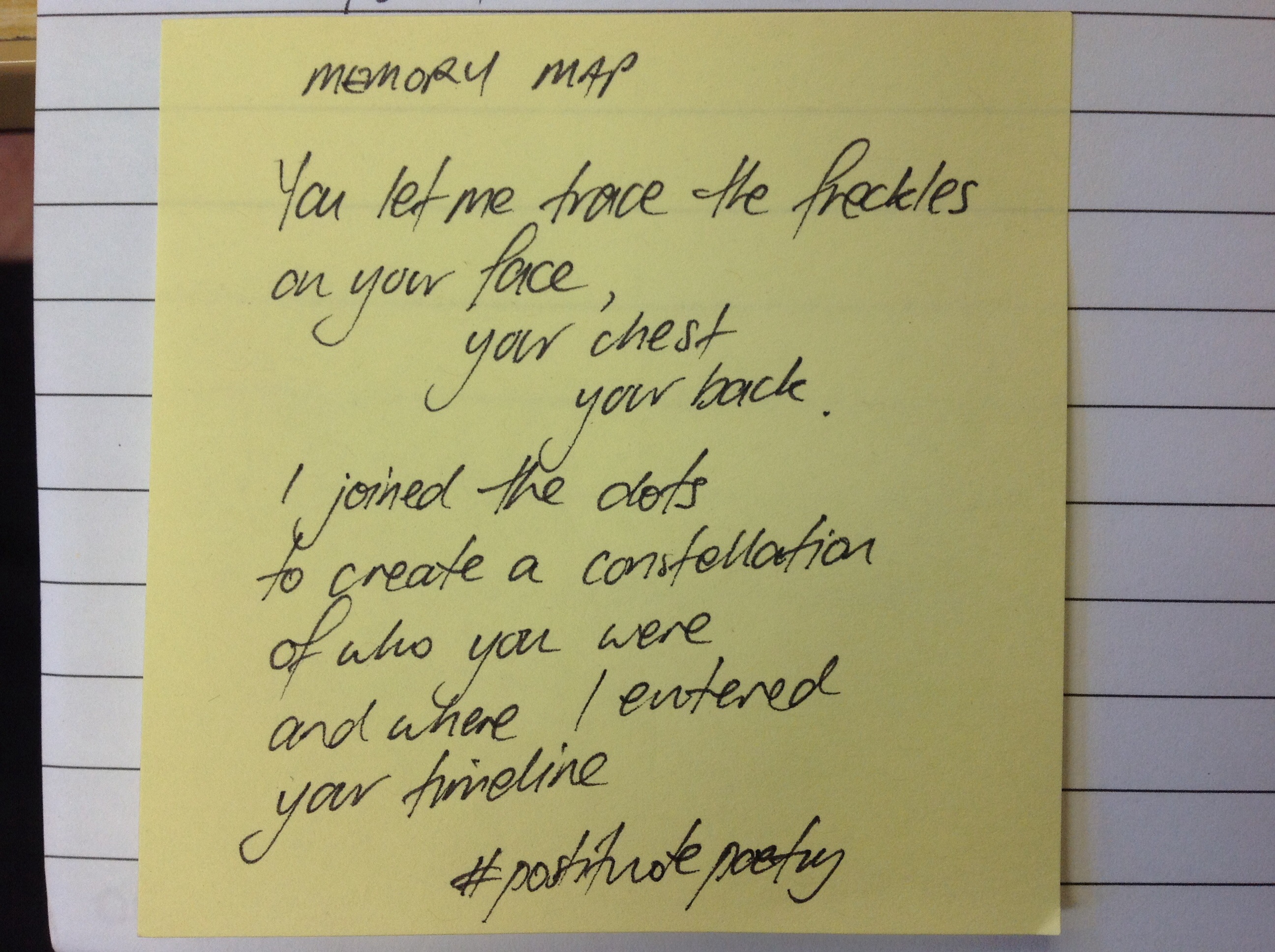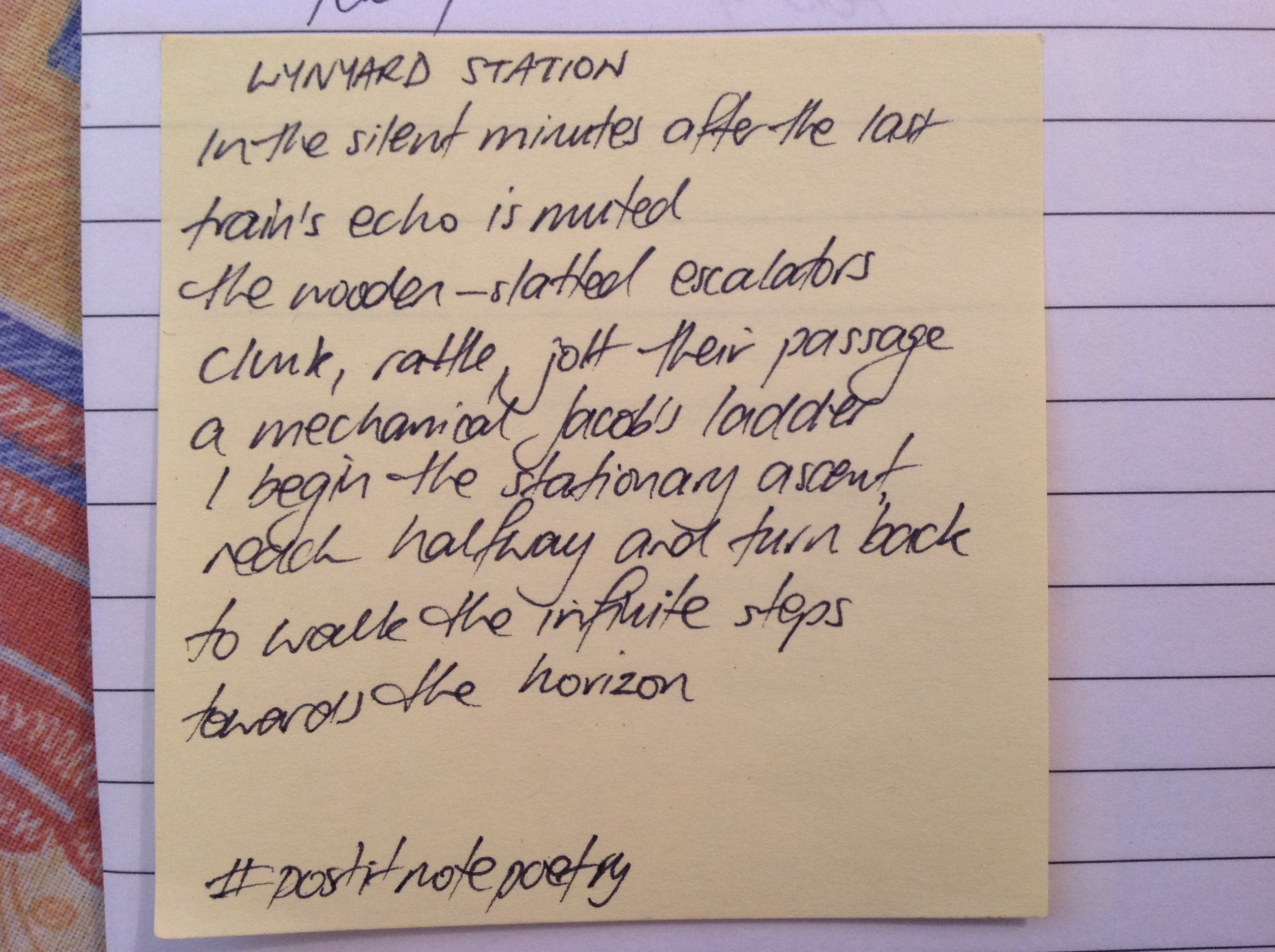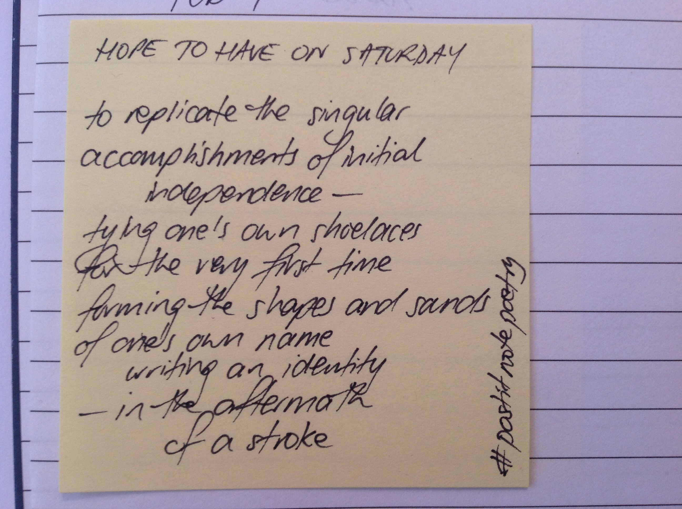 If you want to join in the fun of #postitnotepoetry, grab a pen, a wad of Post It Notes and write. Take a photo it and upload it to twitter with the hashtag #postitnotepoetry