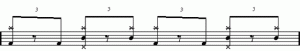 When you learn to play drums, you learn the simple action of RLRL (where R= right hand and L = left hand) Then you learn to play doubles: RRLL RRLL Combine the singles and the doubles to create a new combination known as a paradiddles: RLRR LRLL Then there is the triplet (counted 1 2 3): RLR LRL (or RLL RLL or LRR LRR) One more thing to know: the flam. The flam is an unaccented note (or grace note) followed by a main note. It is written as lR, rL.